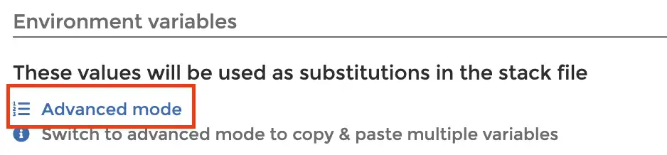 - Click on "Advanced Mode" in the Environment Variables section.